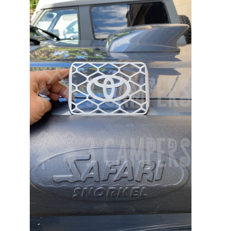 Rejilla decorativa con el logo Toyota, para la instalación en la entrada del snorkel Safari, dándole un toque personalizado a su vehículo.
